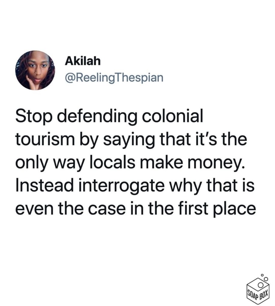 However, the ways in which we travel have become ethically and ecologically unsustainable. What we deem as our modern-day tourism is rooted in colonialism and imperialist histories.