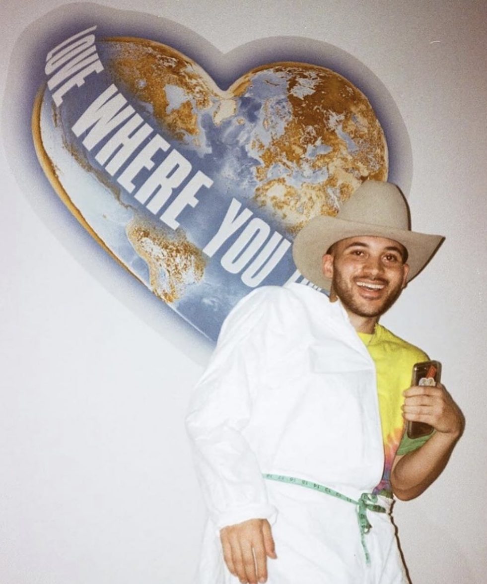 In 2018, Jordan, along with friends, created Destroy World Save Earth– a streetwear line inspiring hope for the future. DWSE is a bright, colorful play on climate apocalypse, with deep purples, military greens, and sleek, utilitarian silhouettes. Jordan explored his passion for sustainability by creating reusable stickers, as well as experimenting with air-dyeing fabrics.