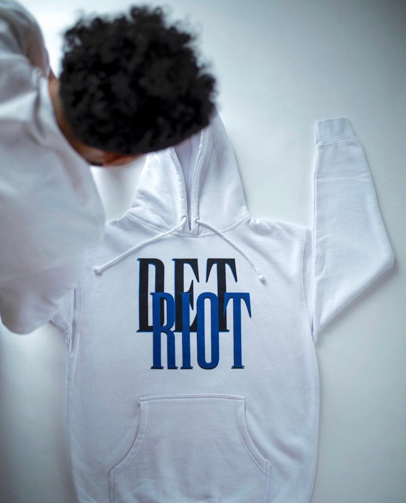In true do-it-yourself style, he learned what he knows today through trial and error. Atkins got his start studying fashion in Detroit, but left school to pursue crafting his own line. He started creating t-shirts from distinct ideas in his head of what he wanted to wear and learned by doing, rather than prolonged planning. Inspired by BET and Black Panther wear, he created a line that was contextually relevant to his generation’s lifestyle. His 2013 DetRIOT line pays homage to his grandpa, a Black Panther.