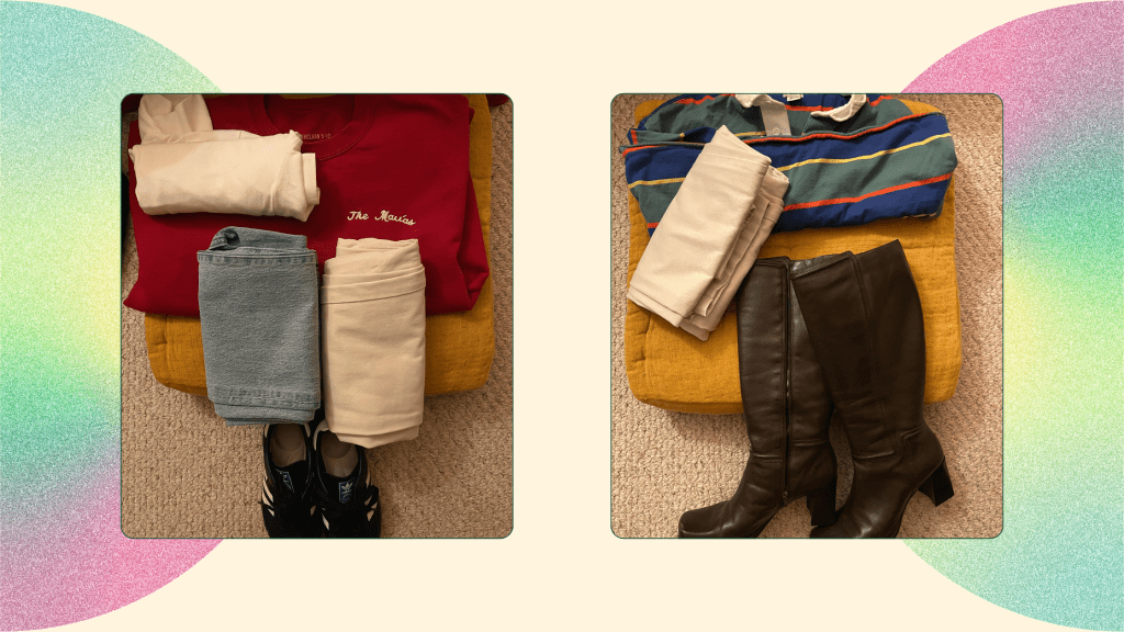 When I pack for a trip, I’ll start out by putting all the different clothes I want to take in separate categories laid out on my bed. As I decide and eliminate clothes, the piles on my bed get smaller and smaller. I will create a new note in my Notes app and include pictures of possible outfit combinations, as well as pictures of my finalized packed suitcase (just to have in case of an airline losing anything).